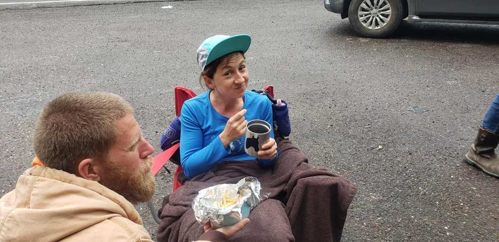 Our camping spot was cold as it was near water but the Wooster’s RV provided a quick hot shower and the treat of their potato soup accompanied by a bean burrito Jeremy made me. The burrito was so yummy that I tried to get several people to try it. No takers. In my defense, I had been running for two days and may have lacked a bit of awareness. At least, I was friendly in that lack of awareness! Ha! I was allotted another four hours for sleep but didn’t sleep more than 20 minutes at a time. My body ached and my mind raced. Without that knowledge or any concern for me, the alarm clock still did her one job and rang at 4 a.m.