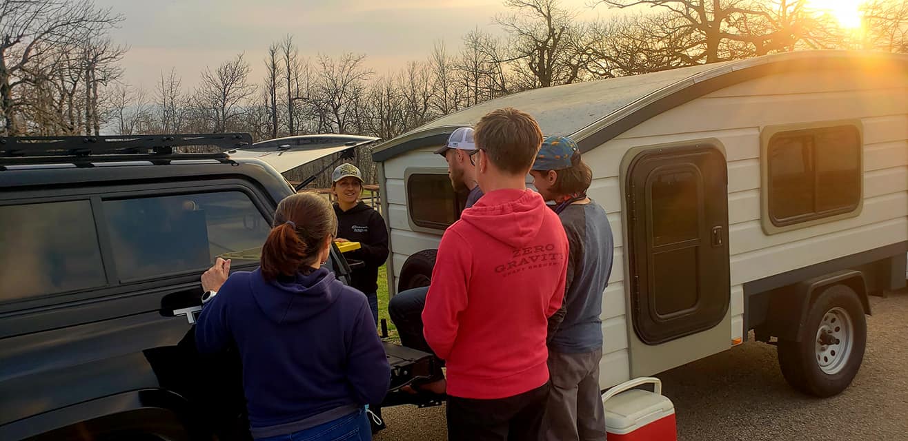 After about 7 hours on the road we made it to QWSP mid-afternoon and, somewhat magically, my other crew members- Edie, Jeremy, and Keith- that were coming in separate vehicles that day arrived within 10-15 minutes of us. Our plan was to grab dinner as a group from the restaurant within the state park lodge but before that we settled in to visit next to Keith and Jeremy’s tents. As the sun slowly descended, we realized it was time to get a few business items taken care of; namely, debriefing the crew on gear, food, and the game plan.