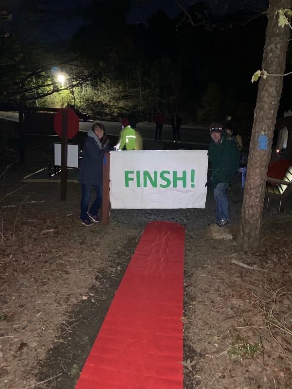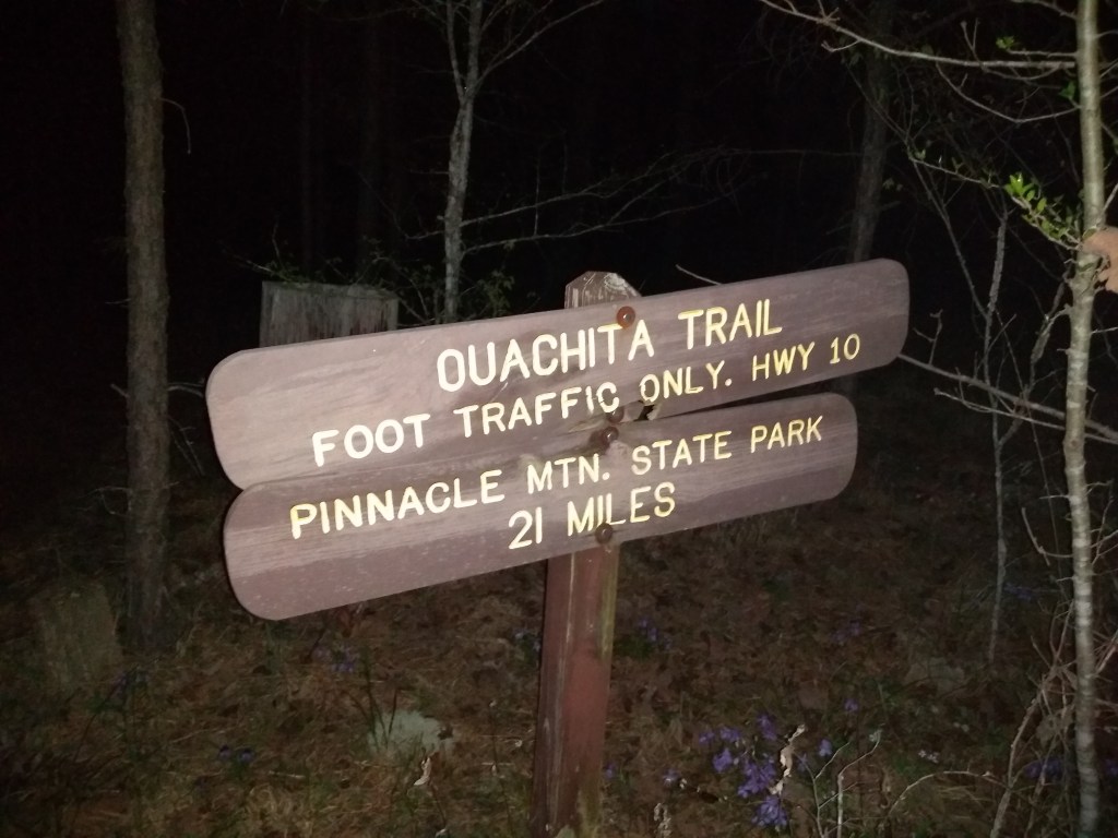 3 days, 22 hours, and 15 minutes after starting the Ouachita Trail in Oklahoma at Talimena State Park I finished at Pinnacle Mountain State Park in Arkansas with my dear crew there to cheer me in with a red carpet and the groups “FINSH” sign because there’s no “ish” in FINSH!