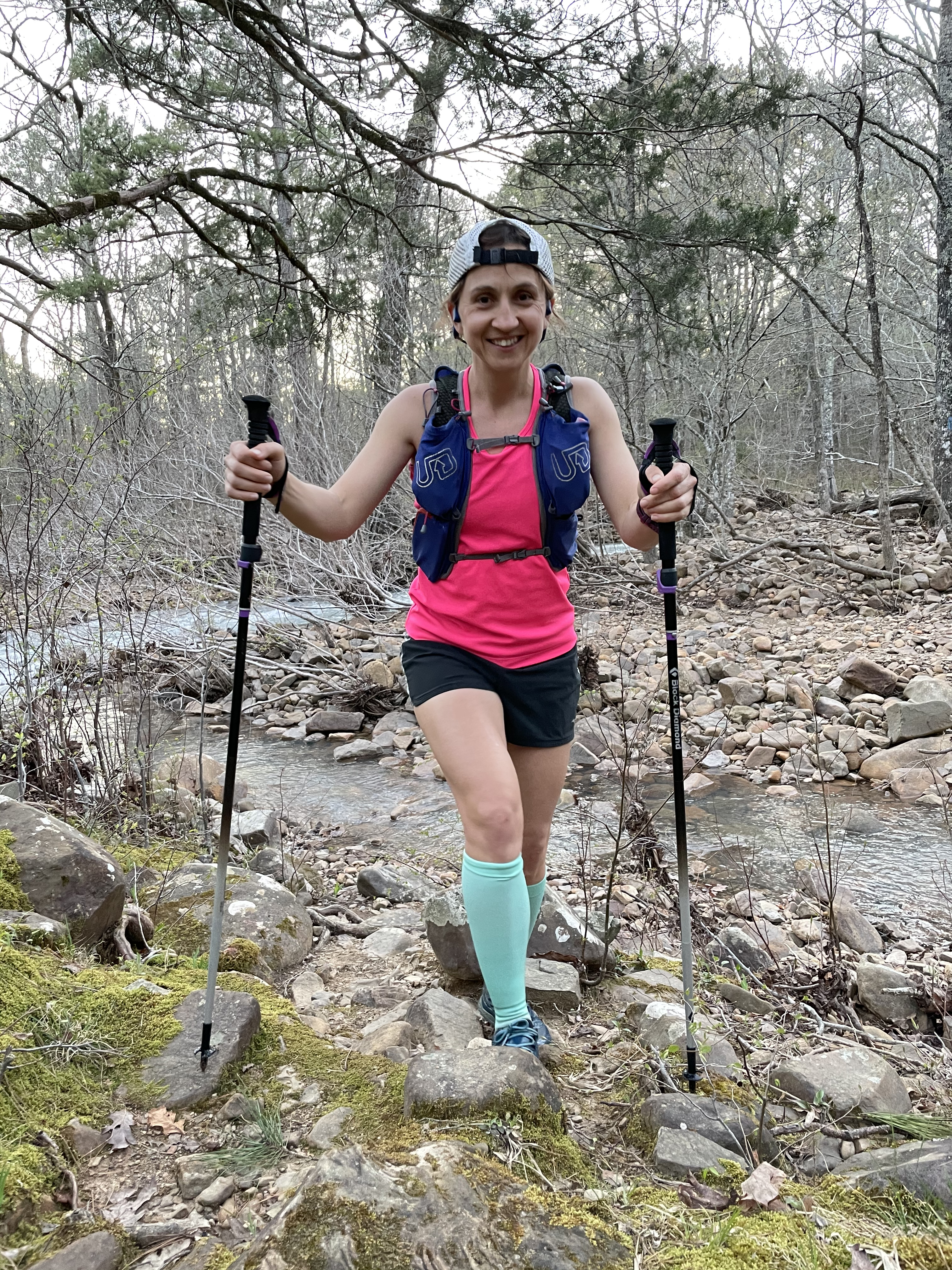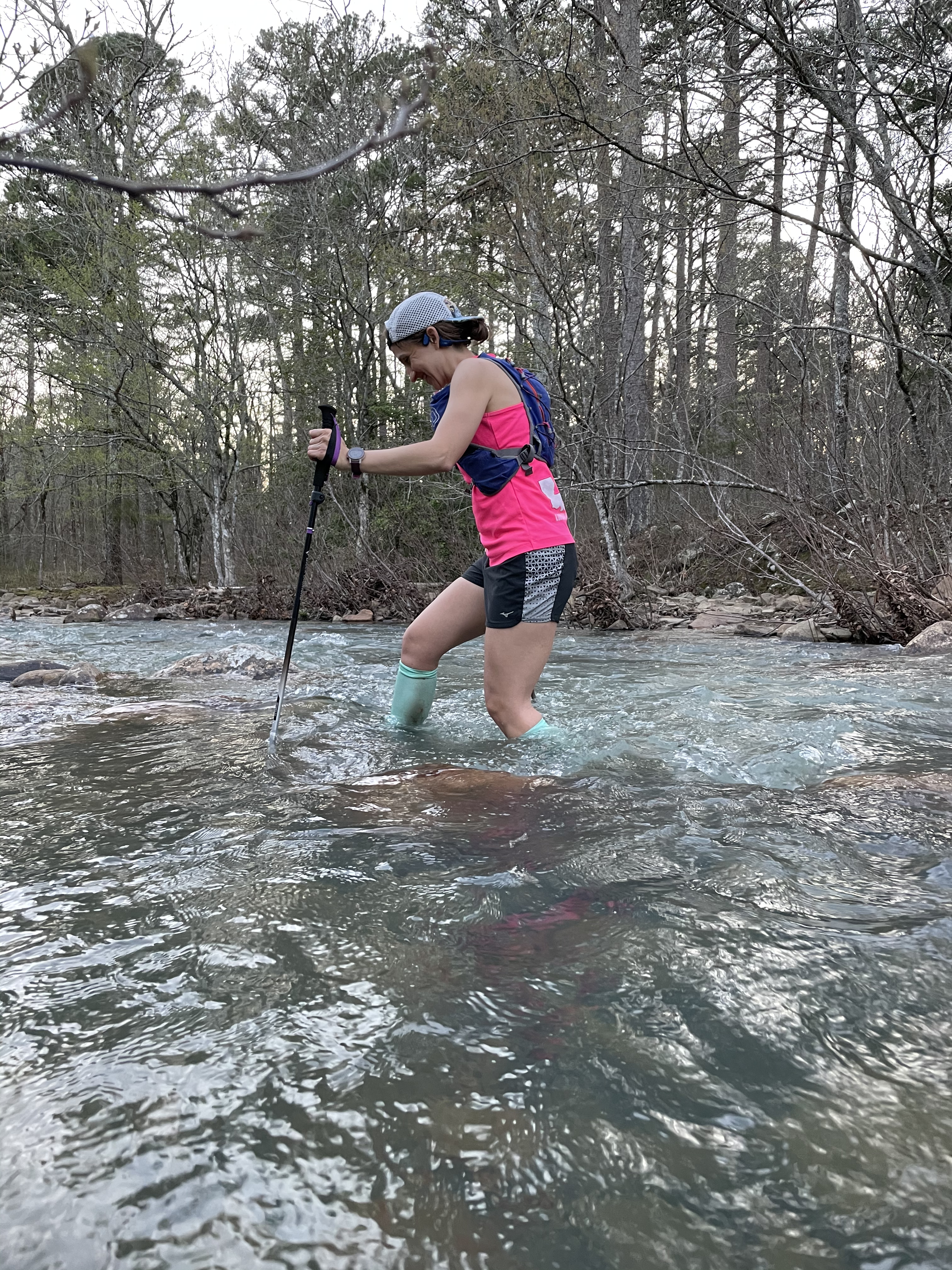 We had to cross the Kiamichi River about 8 times and it was very cold! The highest crossing was probably up to my knees which is why I had the trekking poles with me. Since it was a flowing river it’s easy to lose footing on the slick rocks and the poles added stability.
