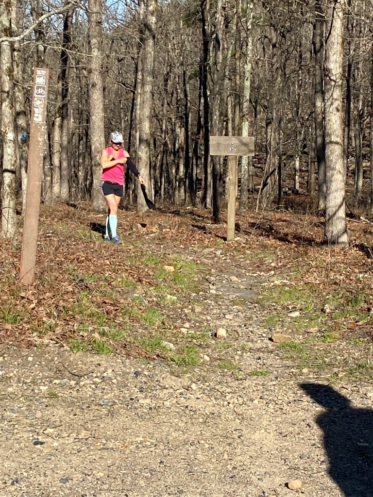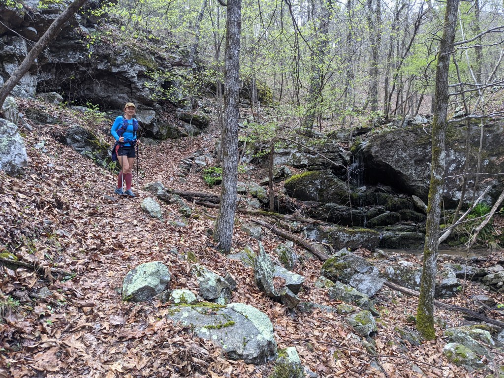 My stomach started complaining which is unusual for me. Many ultra trail runners experience GI distress after long miles but I rarely have any issues especially only 24 miles in. Managing this issue slowed me some over the next 13-15 miles all while I continued to consume calories as planned since I still had nearly 200 miles to cover. This section of trail was beautiful but I was mostly distracted trying to attend to my disgruntled body. One fun encounter I had on this section was meeting Kristy Dodd who I had spoken with on Facebook. She is an active member of the Friends of the Ouachita Trail (FoOT) who’s members regularly use and maintain the trail. It’s an inspiring bunch of people who take their volunteer jobs as trail keepers seriously and always invite others to join them. She cheered me on so loudly and wholeheartedly that I forgot how crappy I felt for a moment!