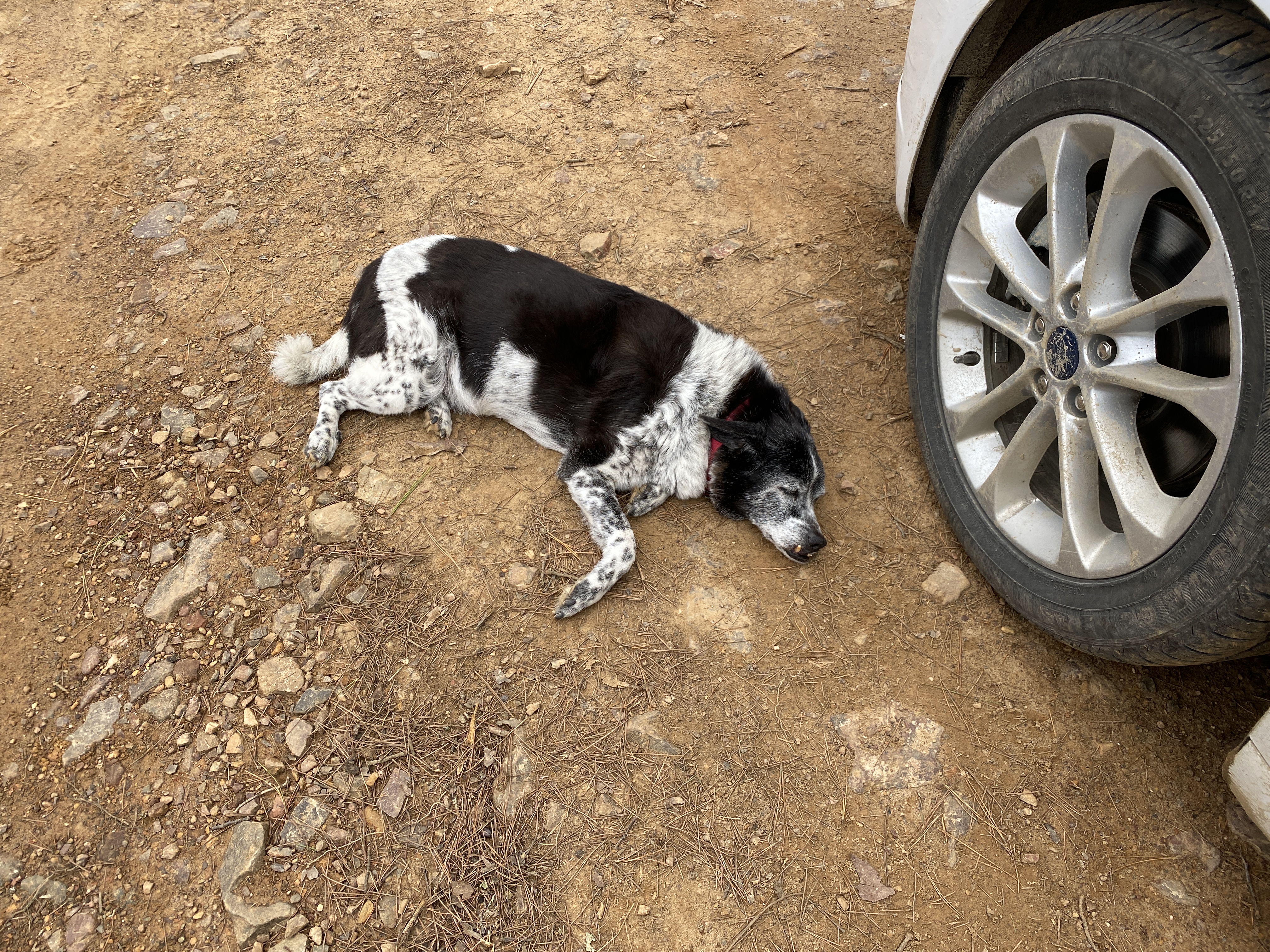 Liz, Chris, Edie, Johnny Ruff Ruff and I set out to cover 12 miles. This was a significant leg for a few reasons: Edie finally got a leg in daylight- yay!, a pup was running with me- yay!, this was my other favorite section of the entire run, I saw Kristy Dodd again (and spoke to Ron on her phone), and I took my one and only fall of the entire 225 mile run! This section was exceptionally beautiful. On top of that, my friend Chris was gleeful to get some trail time and it was so fun to watch him play on the trail with Johnny Ruff Ruff. I thought to myself, “Ahh, I’m just running with friends on a beautiful trail. There’s no better place to be.”