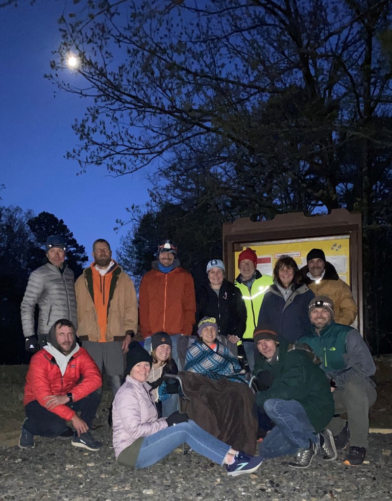 Because I was running with John, it began to sleet. If you know John, then you understand this bold statement. Luckily, we were able to just laugh about it and worked to quicken our pace enough to stay warm. John had prepared a list of dad jokes and puns to share with me…what I mean to say is he literally had a piece of paper in his pocket with a list of jokes he wanted to tell me on the trail. If that’s not a good friend I don’t know what is! Ha!